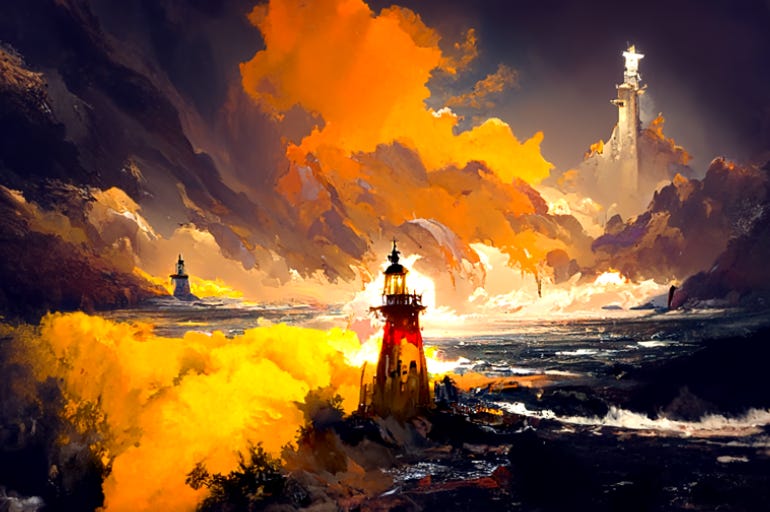 That was sort of a “splash screen” / poster on the page of Disco Diffusion. I saw all the art generated by other people, and I got very excited about it and what it does.