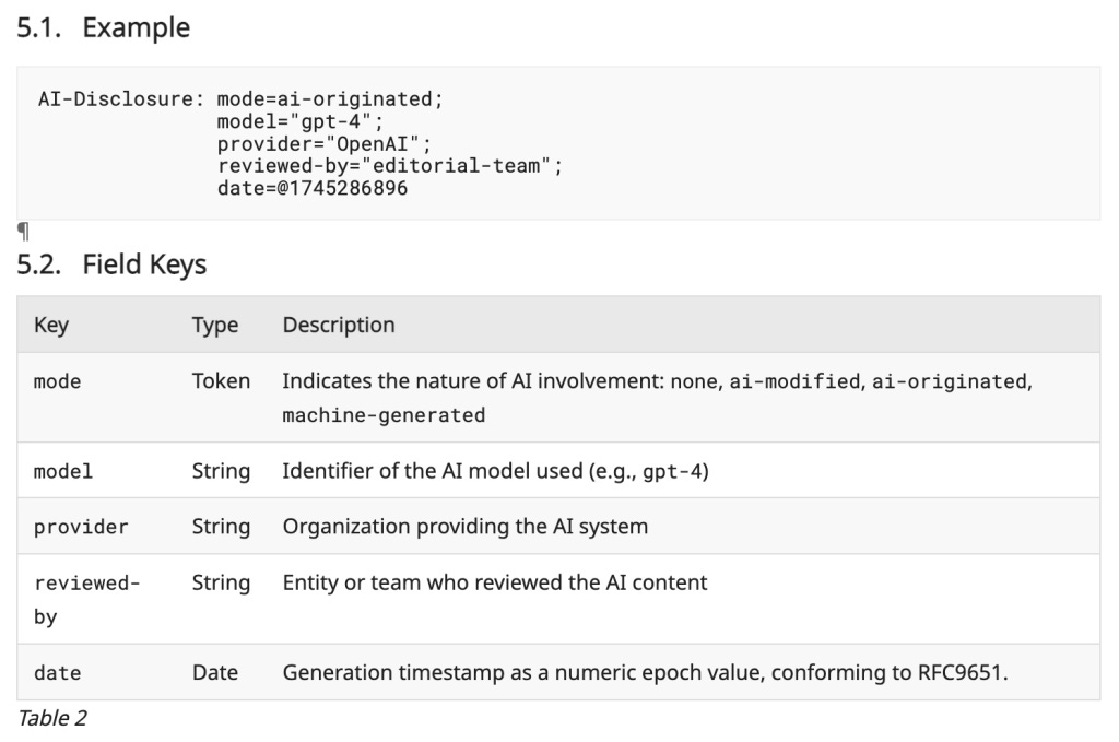 Then, relatively recently, there was a proposal to add HTTP headers clarifying whether the served content/page contains AI-generated content.